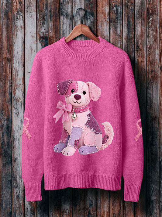 Pull Femme Rose Brodé À Fleurs Et Ruban