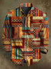 Chemise Décontractée Rétro à Carreaux Patchwork Imprimé à Manches Longues