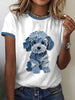 Chien Mignon Denim Patchwork Art T-shirt des femmes