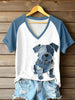 Chien Mignon Patchwork Art V-Neck T-Shirt Femme