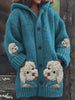 Femmes Vintage Animal Art Puppy Imprimer Bouton épais manches longues à capuche Cardigan