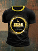 Nouvel an imprimé Vintage Fashion lâche T-shirt à manches courtes hommes