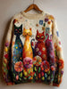 Pull en tricot confortable à imprimé animal rétro pour femme