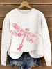 Pull Femme Rose En Tricot Brodé Libellule Florale