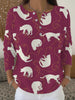 Pull Henley Femme Trendy Blanc Cat & Swirl Print