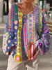Rétro bohème imprimé floral col en V Vintage lâche pull à manches longues