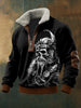 Viking Warrior Skull imprimé à manches longues pour hommes Stand Up Collar Lambhair Zipper Top