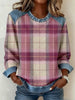 Vintage Plaid Pattern Denim Patchwork Sweatshirt Femme